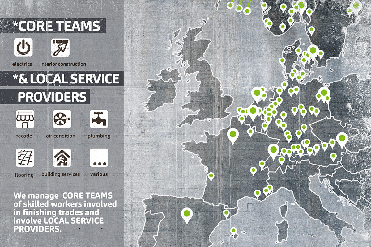 As a strategic partner, we allow you to focus on your core business, while at the same time strengthening infrastructure for your competitive advantage. Our aim is to support you with your expansion plans and maintenance and to offer the same service of the same quality throughout Europe.